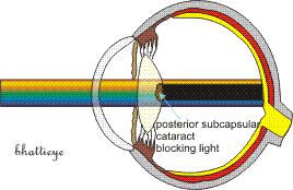 The symptoms of cataract are initially a loss of contrast sensitivity; i.e to say objects that are brightly lit are seen well but the same objects if dimly illuminated are not easily made out. In some types of cataract such as posterior subcapsular cataracts, vision may be more impaired in bright light.